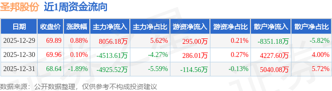 资金流向数据方面,本周圣邦股份主力资金合计净流出1382.95万元,游资资金合计净流入466.45万元,散户资金合计净流入916.49万元。本周资金流向一览见下表: