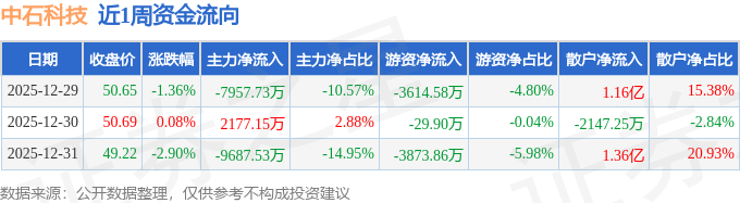 沪深股通持股方面,截止2025年12月31日收盘,中石科技深股通持股数为218.61万股,占流通股比为109.0%。