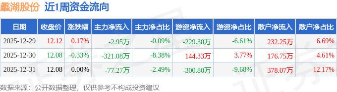 资金流向数据方面,本周蠡湖股份主力资金合计净流出401.3万元,游资资金合计净流出385.77万元,散户资金合计净流入787.07万元。本周资金流向一览见下表: