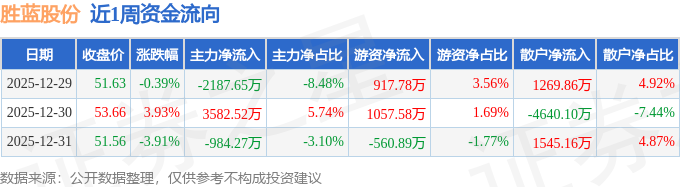 资金流向数据方面,本周胜蓝股份主力资金合计净流入410.61万元,游资资金合计净流入1414.47万元,散户资金合计净流出1825.08万元。本周资金流向一览见下表: