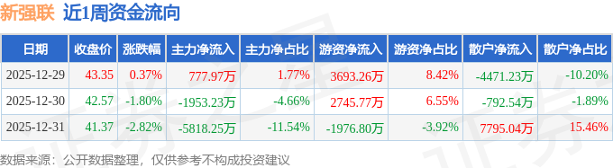 资金流向数据方面,本周新强联主力资金合计净流出6993.5万元,游资资金合计净流入4462.24万元,散户资金合计净流入2531.27万元。本周资金流向一览见下表: