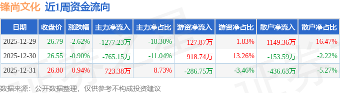 沪深股通持股方面,截止2025年12月31日收盘,锋尚文化深股通持股数为47.46万股,占流通股比为42.0%。