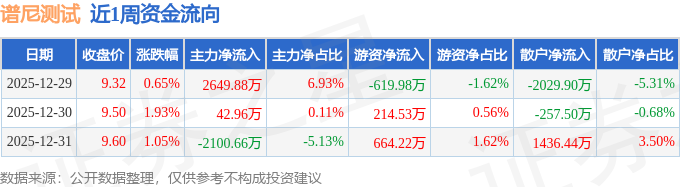 资金流向数据方面,本周谱尼测试主力资金合计净流入592.18万元,游资资金合计净流入258.78万元,散户资金合计净流出850.96万元。本周资金流向一览见下表: