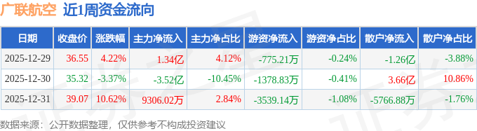 资金流向数据方面,本周广联航空主力资金合计净流出1.25亿元,游资资金合计净流出5693.18万元,散户资金合计净流入1.82亿元。本周资金流向一览见下表: