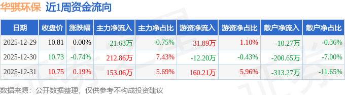 资金流向数据方面,本周华骐环保主力资金合计净流入344.29万元,游资资金合计净流入179.9万元,散户资金合计净流出524.19万元。本周资金流向一览见下表: