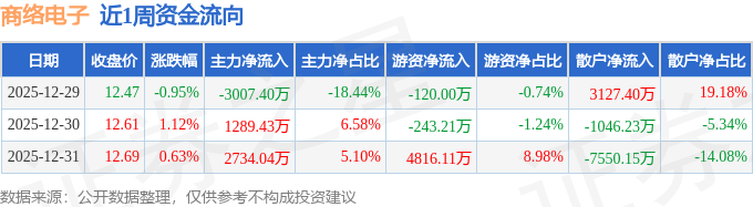 证券之星消息,截至2025年12月31日收盘,商络电子(300975)报收于12.69元,较上周的12.59元上涨0.79%。本周,商络电子12月31日盘中最高价报13.33元。12月30日盘中最低价报12.39元。商络电子当前最新总市值87.18亿元,在元件板块市值排名28/57,在两市A股市值排名2156/5181。