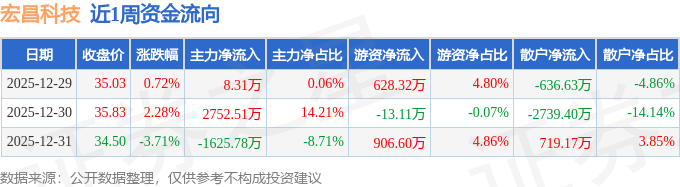 资金流向数据方面,本周宏昌科技主力资金合计净流入1135.04万元,游资资金合计净流入1521.82万元,散户资金合计净流出2656.86万元。本周资金流向一览见下表:
