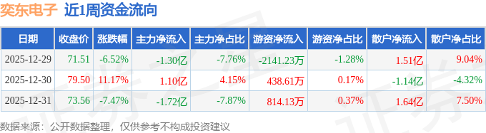 资金流向数据方面,本周奕东电子主力资金合计净流出1.92亿元,游资资金合计净流出888.49万元,散户资金合计净流入2.01亿元。本周资金流向一览见下表: