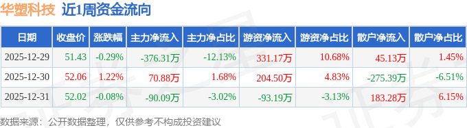 资金流向数据方面,本周华塑科技主力资金合计净流出395.51万元,游资资金合计净流入442.48万元,散户资金合计净流出46.97万元。本周资金流向一览见下表: