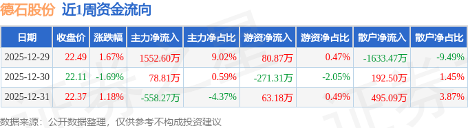 资金流向数据方面,本周德石股份主力资金合计净流入1073.14万元,游资资金合计净流出127.26万元,散户资金合计净流出945.89万元。本周资金流向一览见下表: