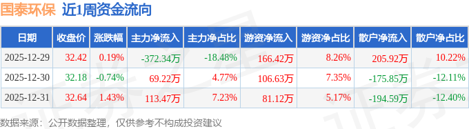 资金流向数据方面,本周国泰环保主力资金合计净流出189.65万元,游资资金合计净流入354.16万元,散户资金合计净流出164.51万元。本周资金流向一览见下表: