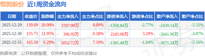 资金流向数据方面,本周恒勃股份主力资金合计净流入9157.66万元,游资资金合计净流出405.31万元,散户资金合计净流出8752.34万元。本周资金流向一览见下表: