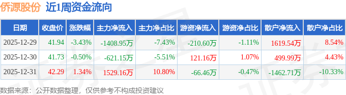 资金流向数据方面,本周侨源股份主力资金合计净流出500.94万元,游资资金合计净流出155.89万元,散户资金合计净流入656.83万元。本周资金流向一览见下表: