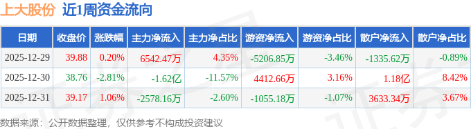 资金流向数据方面,本周上大股份主力资金合计净流出1.22亿元,游资资金合计净流出1849.37万元,散户资金合计净流入1.41亿元。本周资金流向一览见下表: