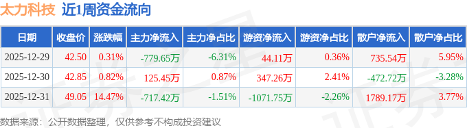 资金流向数据方面,本周太力科技主力资金合计净流出1371.62万元,游资资金合计净流出680.37万元,散户资金合计净流入2051.99万元。本周资金流向一览见下表: