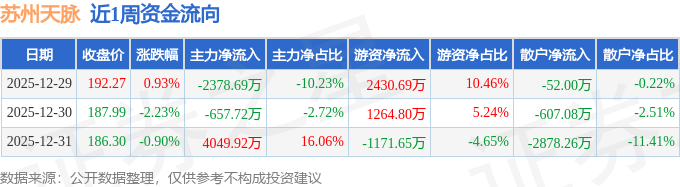资金流向数据方面,本周苏州天脉主力资金合计净流入1013.51万元,游资资金合计净流入2523.84万元,散户资金合计净流出3537.34万元。本周资金流向一览见下表: