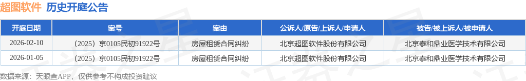 根据统计,近一年内以北京超图软件股份有限公司为当事人的历史开庭公告有2则,其中案由为“房屋租赁合同纠纷”的公告以2则居首。历史开庭公告如下:
