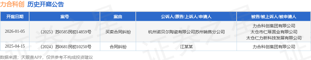 证券之星消息,根据天眼查APP显示,近日公布了一则力合科创集团有限公司作为被告/被上诉人的开庭公告,详细内容如下: