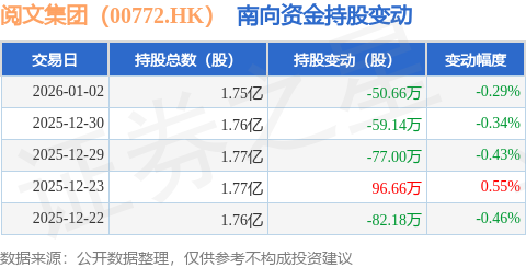 证券之星消息,1月2日南向资金减持50.66万股阅文集团(00772.HK)。近5个交易日中,获南向资金减持的有4天,累计净减持172.32万股。近20个交易日中,获南向资金减持的有14天,累计净减持1314.34万股。截至目前,南向资金持有阅文集团(00772.HK)1.75亿股,占公司已发行普通股的17.17%。