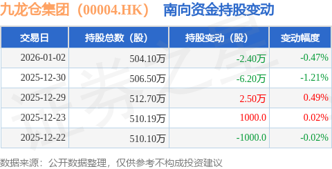 证券之星消息,1月2日南向资金减持2.4万股九龙仓集团(00004.HK)。近5个交易日中,获南向资金减持的有3天,累计净减持6.1万股。近20个交易日中,获南向资金减持的有16天,累计净减持20.9万股。截至目前,南向资金持有九龙仓集团(00004.HK)504.1万股,占公司已发行普通股的0.15%。
