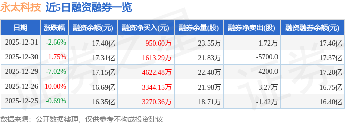 永太科技融资融券信息显示,融资方面,当日融资买入1.35亿元,融资偿还1.25亿元,融资净买入950.6万元,连续3日净买入累计7186.37万元。融券方面,融券卖出2.19万股,融券偿还4700.0股,融券余量23.55万股,融券余额586.85万元。融资融券余额17.46亿元。