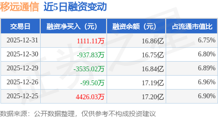 证券之星消息,12月31日,移远通信(603236)融资买入1.55亿元,融资偿还1.44亿元,融资净买入1111.11万元,融资余额16.86亿元,近20个交易日中有12个交易日出现融资净买入。