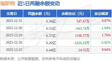证券之星消息,12月31日,福斯特(603806)融资买入2706.35万元,融资偿还2155.88万元,融资净买入550.47万元,融资余额6.34亿元,近20个交易日中有13个交易日出现融资净买入。