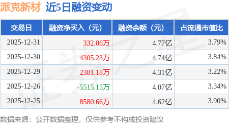 证券之星消息,12月31日,派克新材(605123)融资买入1.31亿元,融资偿还1.27亿元,融资净买入332.06万元,融资余额4.77亿元,近3个交易日已连续净买入累计7018.46万元,近20个交易日中有12个交易日出现融资净买入。