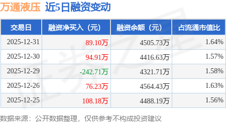 证券之星消息,12月31日,万通液压(920839)融资买入314.26万元,融资偿还225.16万元,融资净买入89.1万元,融资余额4505.73万元,近20个交易日中有11个交易日出现融资净买入。