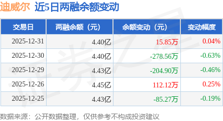 证券之星消息,12月31日,迪威尔(688377)融资买入263.63万元,融资偿还247.84万元,融资净买入15.79万元,融资余额4.4亿元。