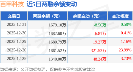 证券之星消息,12月31日,百甲科技(920057)融资买入8.05万元,融资偿还16.56万元,融资净卖出8.5万元,融资余额1679.1万元。