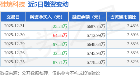 证券之星消息,12月31日,硅烷科技(920402)融资买入259.65万元,融资偿还284.89万元,融资净卖出25.24万元,融资余额6687.75万元。