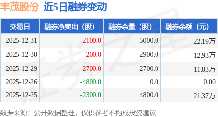 融券方面,当日融券卖出2100.0股,融券偿还0.0股,融券净卖出2100.0股,融券余量5000.0股,近3个交易日已连续净卖出累计5000.0股。