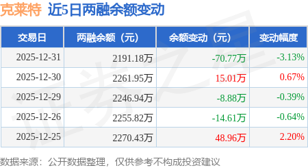 证券之星消息,12月31日,克莱特(920689)融资买入105.7万元,融资偿还176.47万元,融资净卖出70.77万元,融资余额2191.18万元。