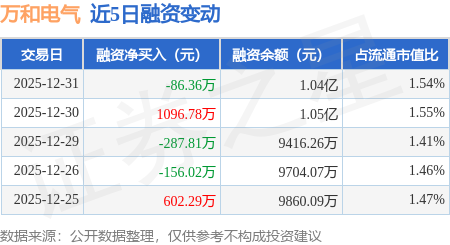 证券之星消息,12月31日,万和电气(002543)融资买入685.05万元,融资偿还771.41万元,融资净卖出86.36万元,融资余额1.04亿元,近20个交易日中有12个交易日出现融资净买入。