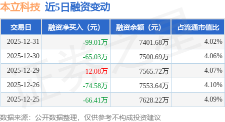 证券之星消息,12月31日,本立科技(301065)融资买入109.44万元,融资偿还208.45万元,融资净卖出99.01万元,融资余额7401.68万元。