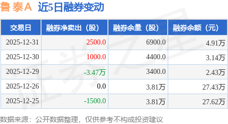 融券方面,当日融券卖出2500.0股,融券偿还0.0股,融券净卖出2500.0股,融券余量6900.0股。
