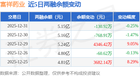 证券之星消息,12月31日,富祥药业(300497)融资买入7216.84万元,融资偿还7346.84万元,融资净卖出130.0万元,融资余额5.14亿元。
