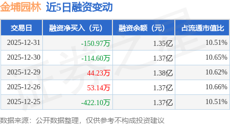 证券之星消息,12月31日,金埔园林(301098)融资买入214.41万元,融资偿还365.38万元,融资净卖出150.97万元,融资余额1.35亿元,近20个交易日中有11个交易日出现融资净买入。