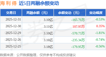 证券之星消息,12月31日,海 利 得(002206)融资买入1065.59万元,融资偿还1223.36万元,融资净卖出157.77万元,融资余额3.09亿元。