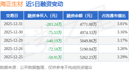 证券之星消息,12月31日,海正生材(688203)融资买入74.47万元,融资偿还277.71万元,融资净卖出203.24万元,融资余额4771.08万元。