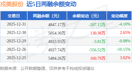 证券之星消息,12月31日,戎美股份(301088)融资买入462.82万元,融资偿还671.25万元,融资净卖出208.43万元,融资余额4812.87万元。