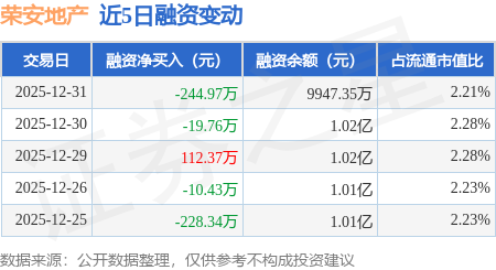 证券之星消息,12月31日,荣安地产(000517)融资买入118.77万元,融资偿还363.74万元,融资净卖出244.97万元,融资余额9947.35万元。