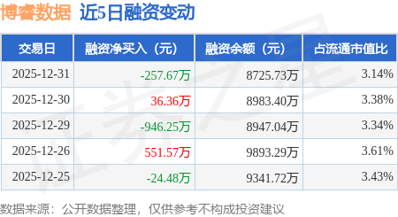 证券之星消息,12月31日,博睿数据(688229)融资买入666.99万元,融资偿还924.65万元,融资净卖出257.67万元,融资余额8725.73万元。