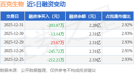 证券之星消息,12月31日,百克生物(688276)融资买入658.74万元,融资偿还951.81万元,融资净卖出293.07万元,融资余额2.28亿元。