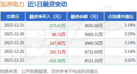 证券之星消息,12月31日,泓淋电力(301439)融资买入317.5万元,融资偿还691.13万元,融资净卖出373.63万元,融资余额8695.68万元,近20个交易日中有11个交易日出现融资净买入。