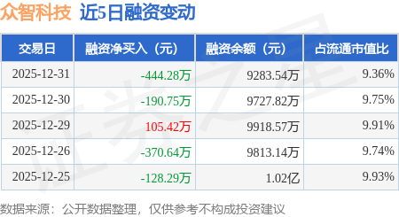 证券之星消息,12月31日,众智科技(301361)融资买入428.27万元,融资偿还872.55万元,融资净卖出444.28万元,融资余额9283.54万元。