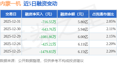 证券之星消息,12月31日,内蒙一机(600967)融资买入4490.34万元,融资偿还5206.89万元,融资净卖出716.55万元,融资余额5.86亿元。