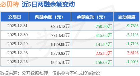 证券之星消息,12月31日,必贝特(688759)融资买入554.94万元,融资偿还1305.24万元,融资净卖出750.3万元,融资余额6963.12万元。