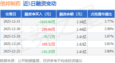 证券之星消息,12月31日,信邦制药(002390)融资买入667.69万元,融资偿还1685.68万元,融资净卖出1018.0万元,融资余额2.34亿元。